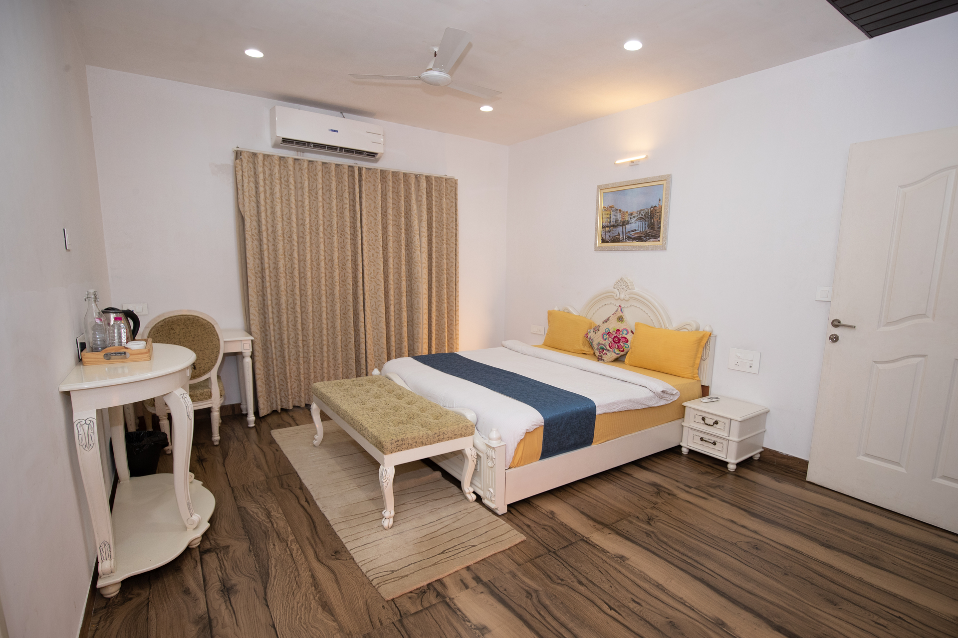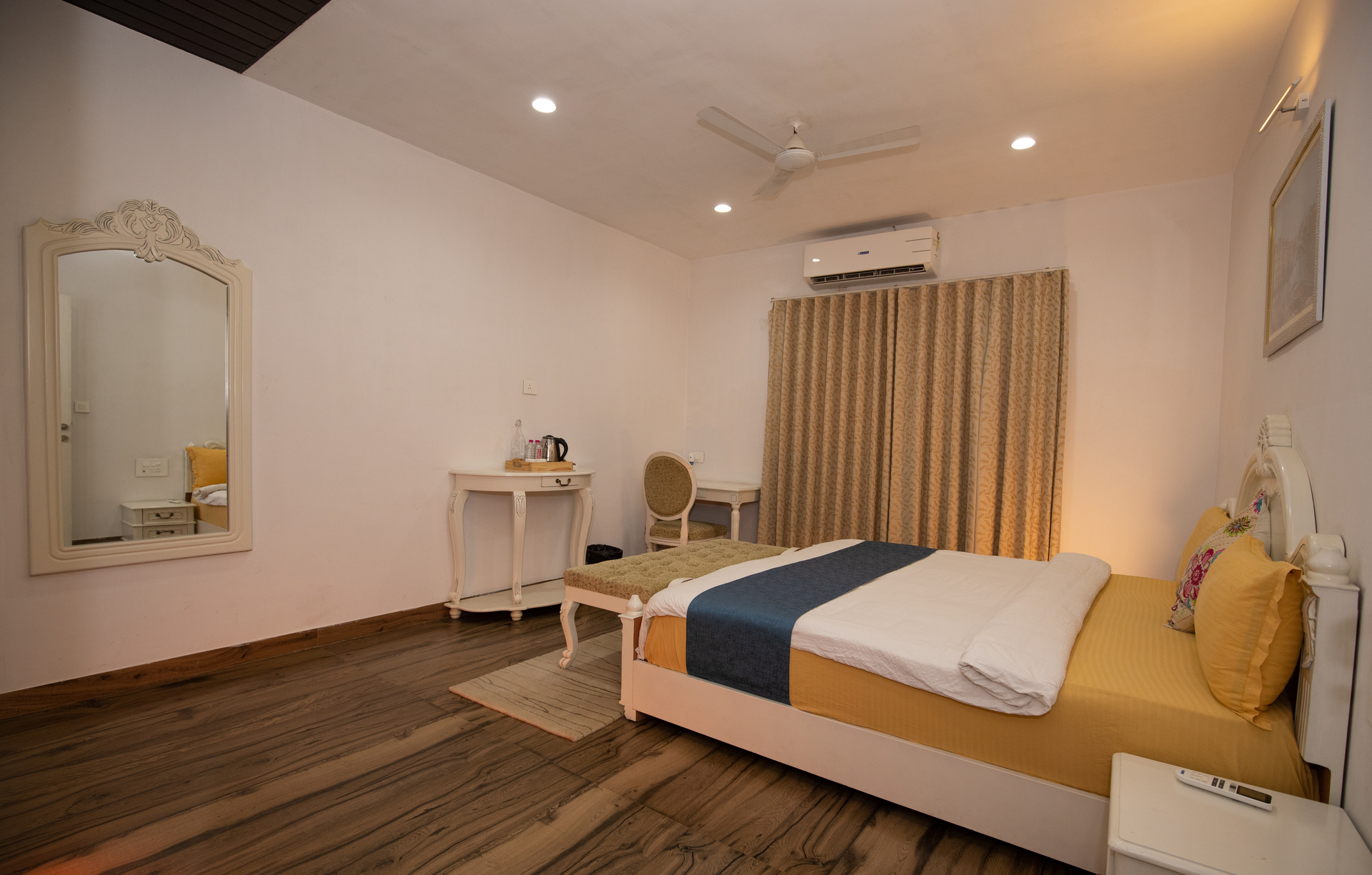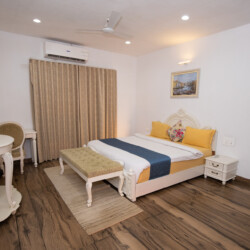 Spread across 168 sq. feet,This room is ideal for staycation guests, comes with a king size bed and has an attached bathroom & private balcony.The Room is provided with Towels and Basic Amenities as well.The room has a panoramic view of the aravalli hills. Escape from your mundane routine and relax at amizunie’s.